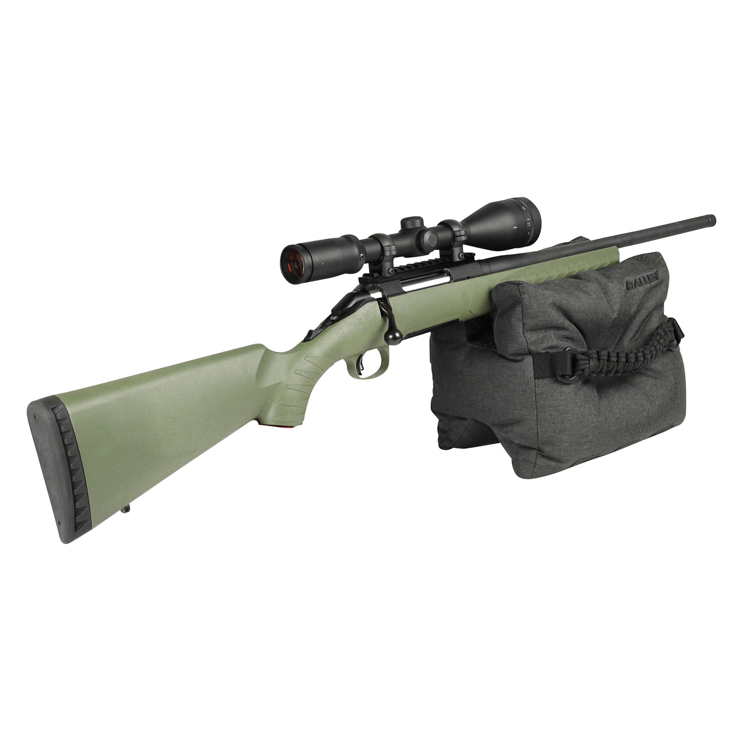 The Eliminator Front Shooting rest makes sight-in easier. The gun can easily be moved to acquire the target, yet stays steady on the semi-tacky surface. One strap is made up of a paracord handle to improve the grip and carrying experience. The front rest has an integrated 4-round rifle cartridge carrier made from elastic and thermoplastic.