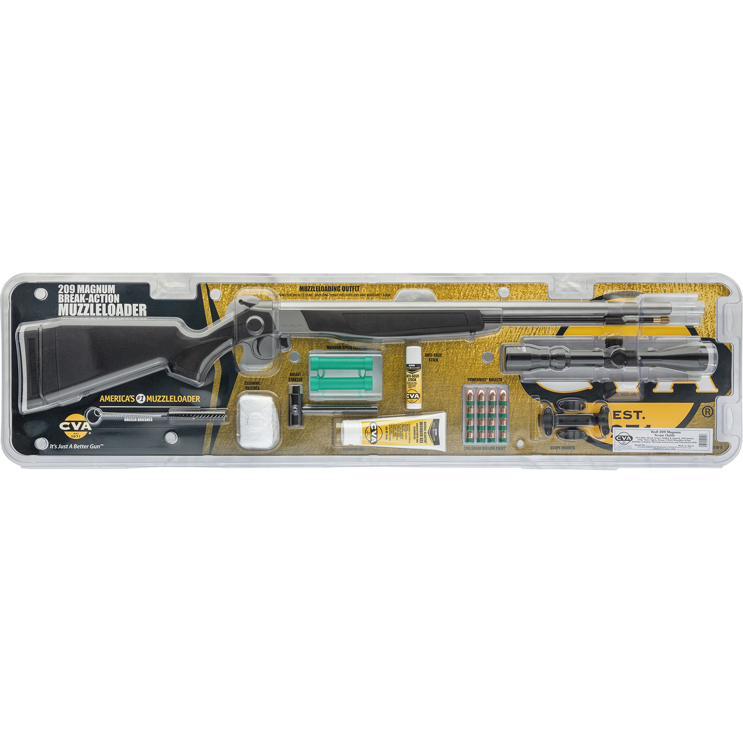 CVA PR2117SVP Wolf V2 50 Cal 209 Primer 24″ Matte Stainless Barrel/Rec Black Synthetic Stock Includes 3-9x32mm Scope & Outfit Clam Package