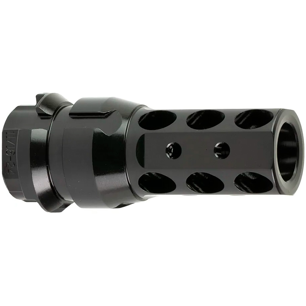 The Dead Air KeyMo Muzzle Brake for .46 caliber firearms is designed for superior performance, durability, and ease of use. Engineered to handle calibers up to .458, this muzzle brake delivers efficient gas and pressure distribution for optimal suppressor performance and longer service life. Its innovative design eliminates the need for shims and prevents carbon locking, ensuring easy suppressor removal. Made from 4140 HT chromium-molybdenum heat-treated steel with a black nitride finish, the KeyMo 46 combines strength and corrosion resistance. Compatible with KeyMo-equipped silencers, this muzzle brake offers a reliable and secure mounting solution for your firearm.