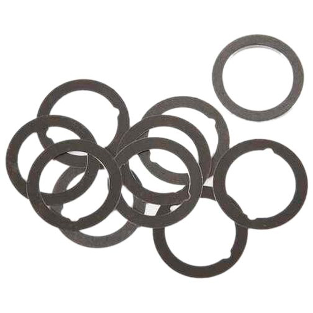 The Dead Air Shim Kit for barrels with 1/2-28 or 5/8-24 threads is composed of three different shim thicknesses. The graphic on the packaging details the thicknesses and identifying features of the shims included with the kit. Always place the thickest shim(s) on the barrel first.
