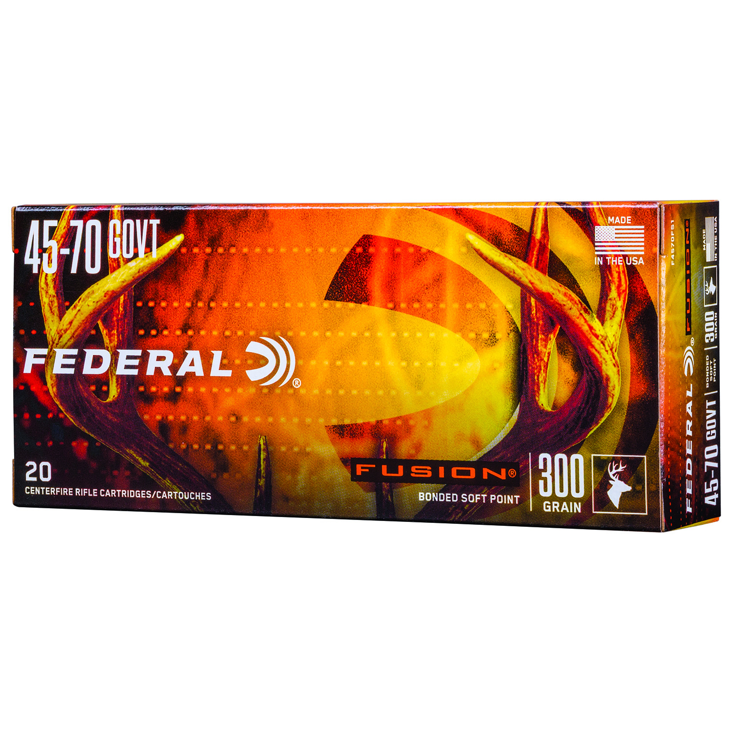 Federal Fusion, 45-70 Government, 300 Grain, Boat Tail, 20 Round Box F4570FS1