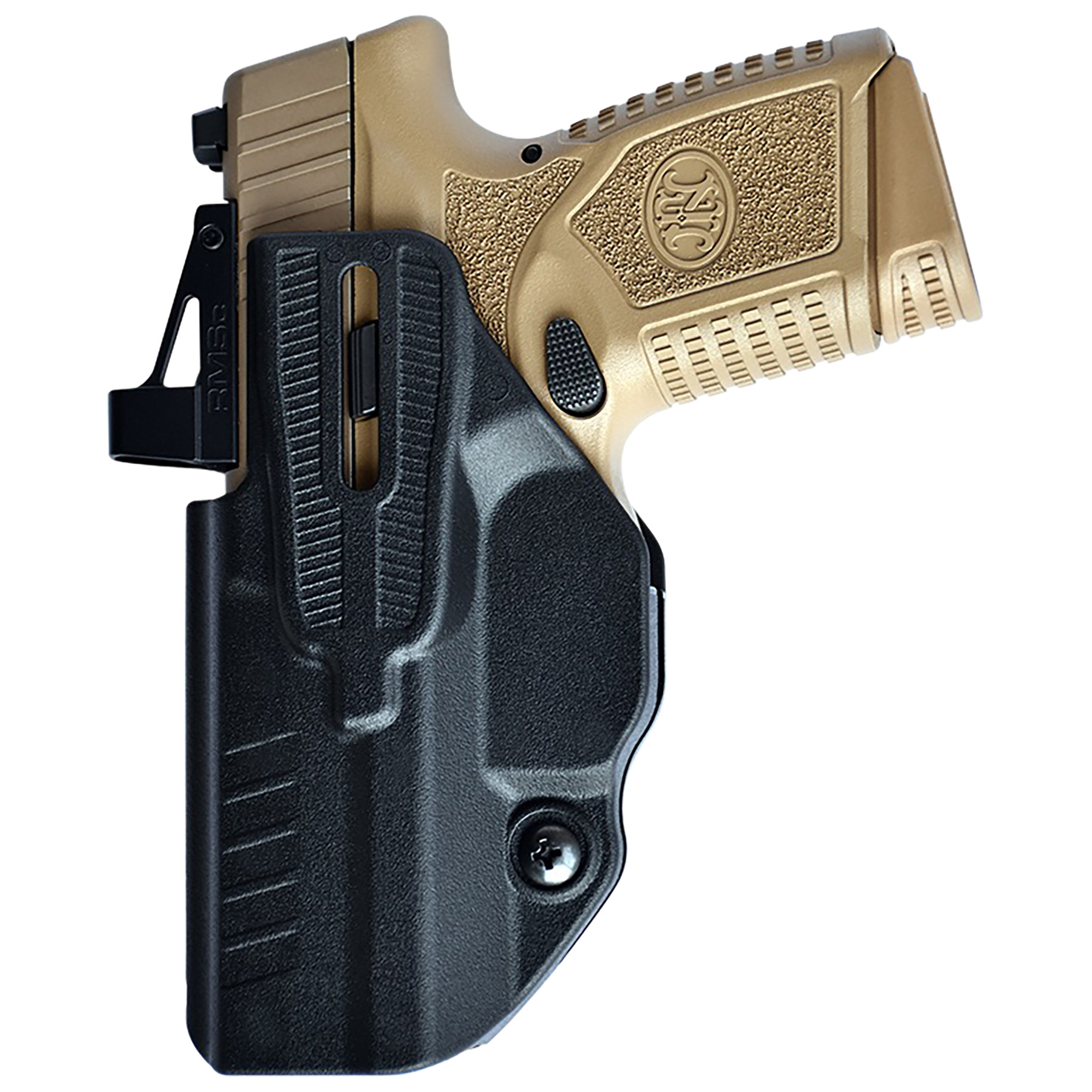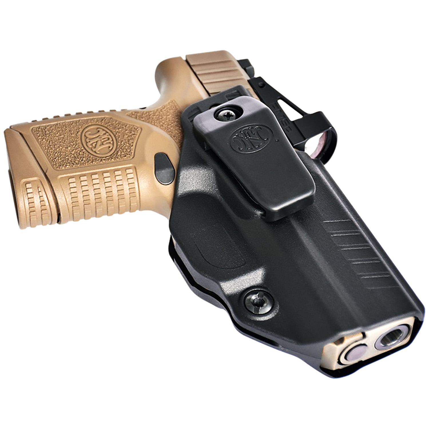 The FN Reflex IWB holster is the perfect choice for everyday carry with your FN Reflex 9mm pistol platform. This holster has a 1.5″ belt clip, 30-degree cant and has a retention-adjustment at the trigger guard. This holster is ambidextrous and works great for rapid access. The injection-molded holster provides complete retention and immediate access without the sharp edges of kydex, providing maximum versatility and all-day carry comfort.