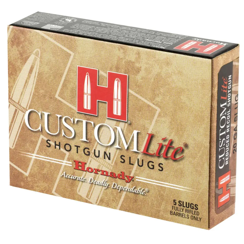 Hornady Custom Lite, 20Ga FTX, 2.75″, 250 Grain, Sabot Slug, 5 Round Box 86233