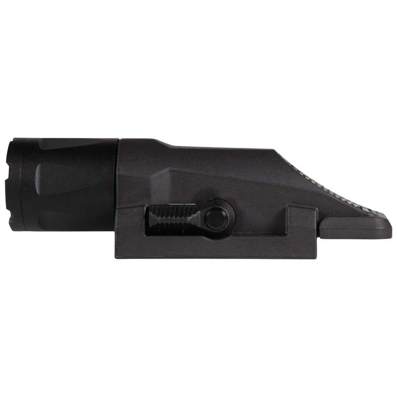 The newest generation of weapon mounted lights from INFORCE has arrived, offering users even more brightness and power than ever before. The INFORCE WML White/IR Gen 3 has over double the beam intensity of its predecessor on a single CR123a battery, without compromising on the 1.5 hour battery life. With a beam intensity of 10,000 candelas, the WML White/IR Gen 3 is incredibly bright and boasts a high-power 450 Lumen bulb that can easily blind someone in broad daylight. This model has a beam range of 656ft (200m) and is perfect for close quarter engagements when mounted on a shotgun or pistol-caliber carbine, or mid-range shooting when clipped onto a rifle. The WML White/IR Gen 3 is designed to work in tandem with modern night vision equipment and comes equipped with a 160mW infrared light that can operate for up to 2.5 hours. Its ergonomic nonslip button, shaped to fit the human thumb, replaces older tape switches and allows for intuitive activation and deactivation, while a flip safety ensures that the device cannot be turned on until the user is ready.