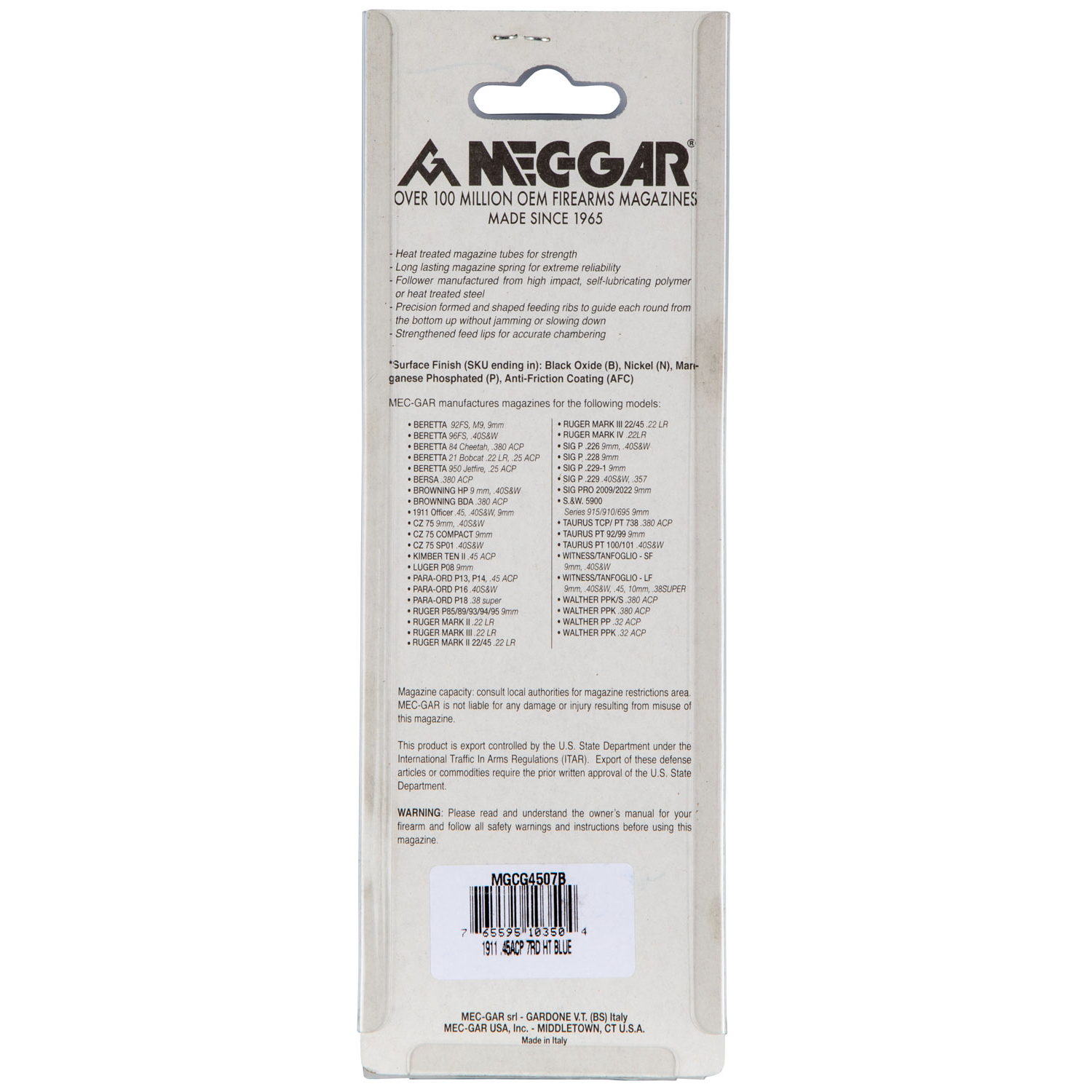 Mec-Gar USA Magazine, 45ACP, 7 Rounds, Fits 1911, Blued Finish MGCG4507B