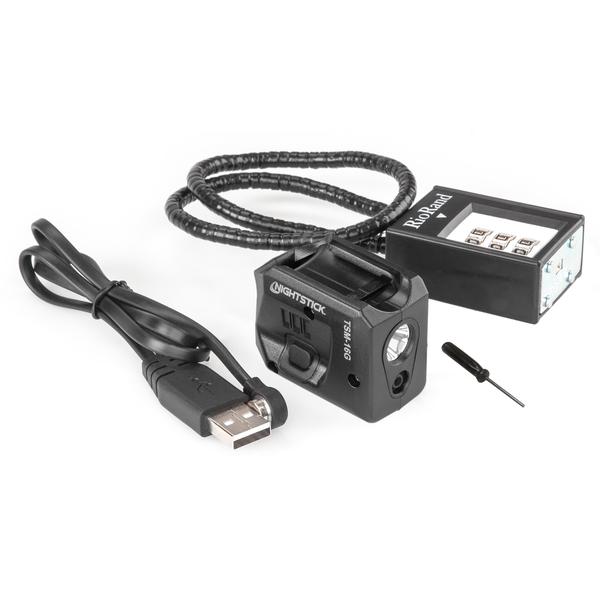 The TSM-16G Subcompact Tactical Weapon-Mounted Light with Green Laser for Springfield Armory Hellcat pistols uses a super-bright LED rated at 150 lumens working in conjunction with a precision-engineered miniature reflector to create a bright white beam of light rated at 104 meters. This weapon light features ambidextrous low-profile switches on each side of the light to operate the momentary-on and constant-on lighting modes or Class IIIa 532nm daylight-visible green laser. These lighting modes include white light, laser, or both light and laser. The two glass-filled nylon plastic housings of the TSM-16G is designed to lock onto the front of the pistol’s trigger guard for secure installation and the lowest profile possible. The weapon light includes a Nightstick MagMate USB magnetically coupled charger, a trigger lock for secure charging, and an Allen screwdriver for installation and laser aim adjustments.