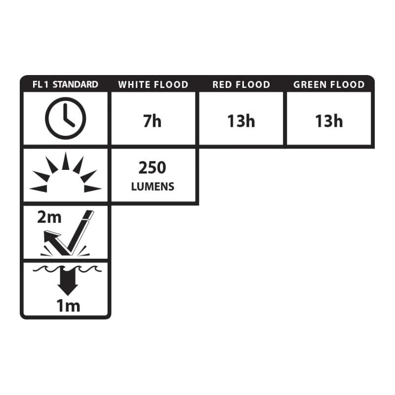 The Nightstick USB-4510B Multi-Flood Headlamp is designed to be a lightweight area flood light with white, green or red light. The light can be worn alone with the included strap or attached to the brim of a ball cap with the adjustable clip. The USB-4510B is manufactured from rugged engineered polymer and features a multi-color LED. In white light mode, the headlamp is rated at 250 Lumens for 7 hours in high mode and 60 Lumens for up to 35 hours while in low. The red and green light modes run for over 12 hours. The front-mounted dual switches provide quick access to the different light modes for easy, intuitive operation. Built-in charge indicator. Includes Headlamp, Elastic non-slip head strap, 2′ USB-C charging cord, 3M Dual Lock fastener w/alcohol wipe, instruction manual.