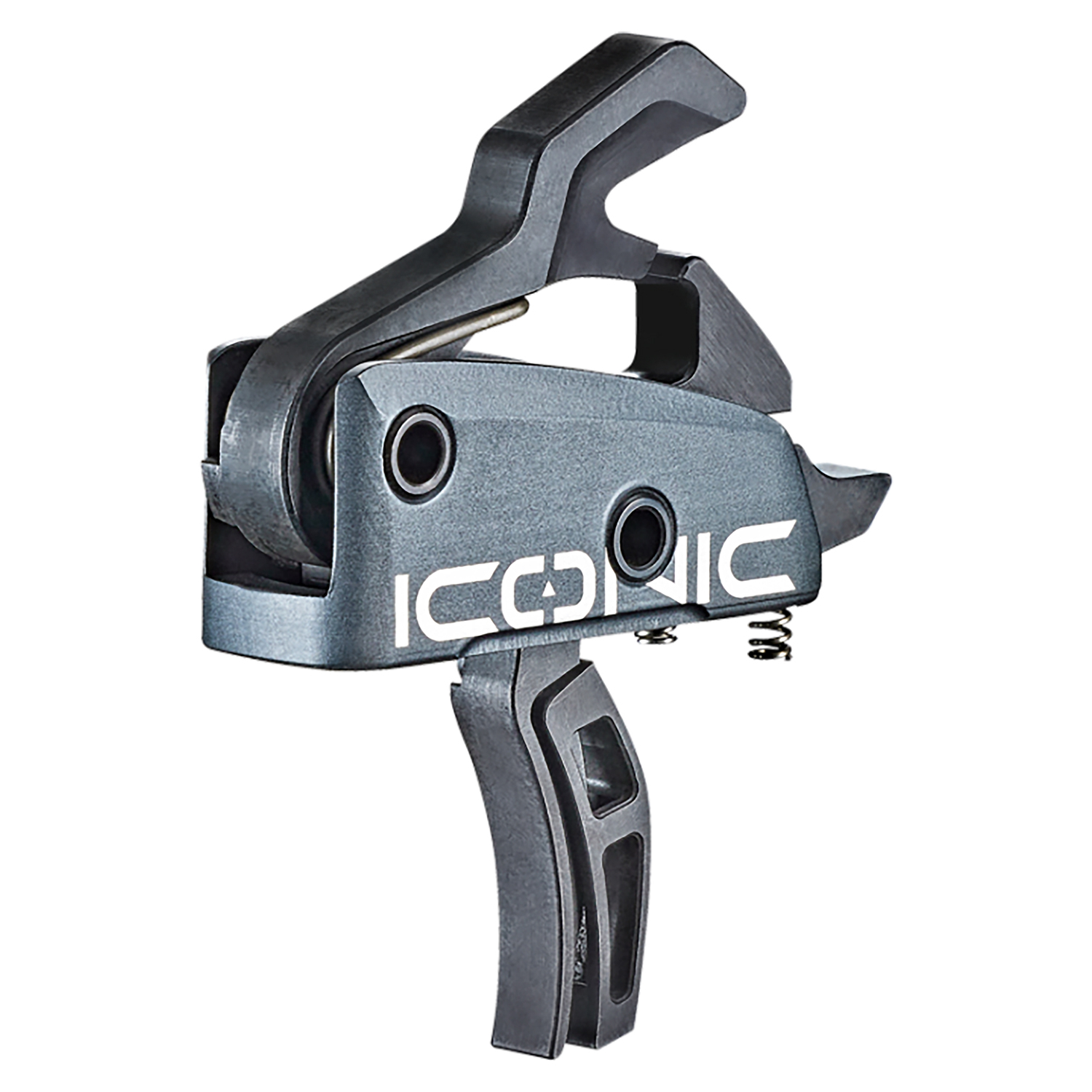 The ICONIC Independent Two-Stage Trigger combines the awareness, feedback, and flexibility of a two-stage trigger with the responsiveness, crispness, and speed of a single-stage trigger. On other two-stage triggers, the stages arent independent. The same basic parts interact at both stages, which can limit performance. But the stages on an ICONIC Independent Two-Stage Trigger have separate mechanical components for each stage. This allows a distinct wall; a crisp, clean second-stage break (comparable to a high-performance single-stage trigger); virtually no overtravel; no creep; and without the inherent mushiness felt in standard, captive two-stage triggers.