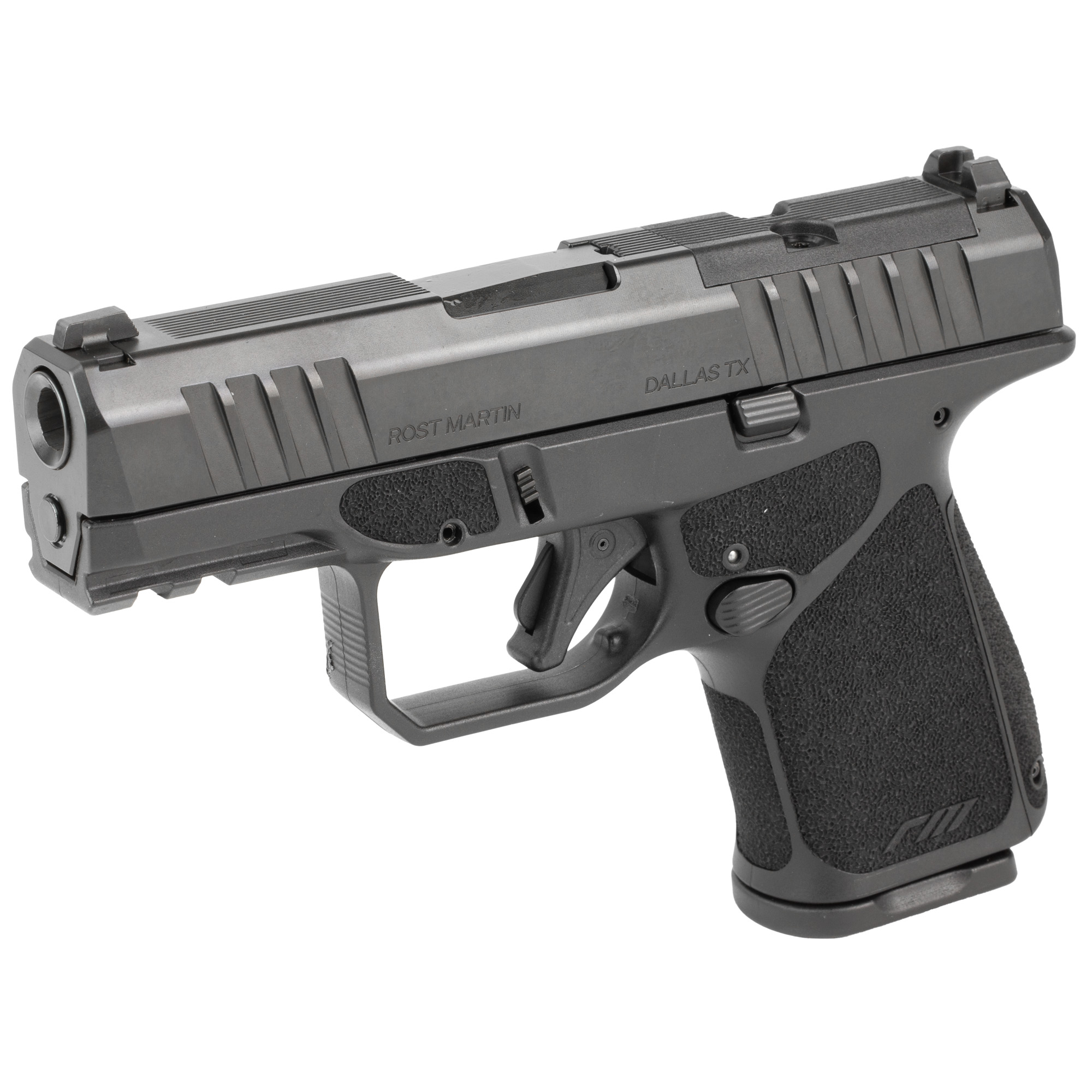 Rost Martin RM1S, Striker Fired, Semi-automatic, Polymer Frame Pistol, Sub-Compact, 9MM, 3.6″ Barrel, Nitrocarburized Finish, Black, Front White Dot Sight, Black Serrated Rear Sight, Optics Ready, Ambidextrous, 2 Magazines, (1)-15 Round and (1)-12 Round, Includes RMR Mounting Plate RM1SBLKOSP