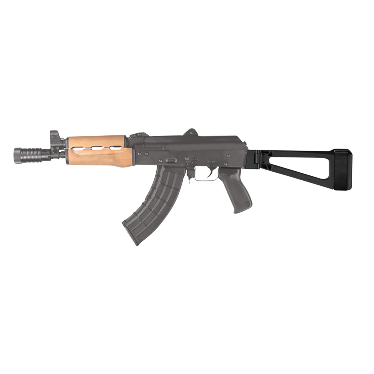 Featuring a slim, left side-folding hinge with a pull-through design which ideally compliments AK pistol builds. The AKTF is a complete assembly, ready-to-install and provides you with all of the advantages of a pistol with improved control by adding an additional point of contact for stabilization. Includes complete assembly including AK adapter.