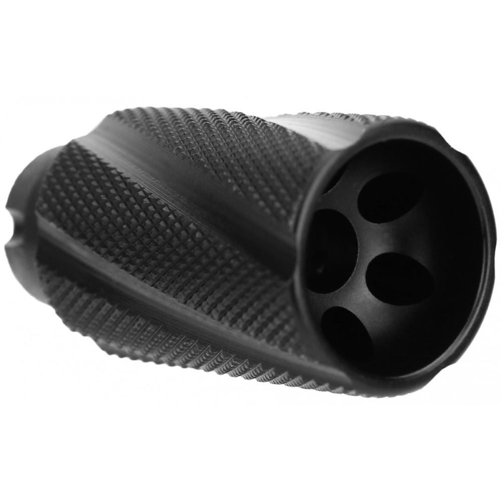 With an overall length of 2.25 inches and a weight of only 5.7 ounces, this compensator is both lightweight and compact. It features a robust steel construction that ensures durability and reliability. The knurled spiral lightening flutes not only provide a sleek aesthetic but also assist in reducing weight without compromising strength.