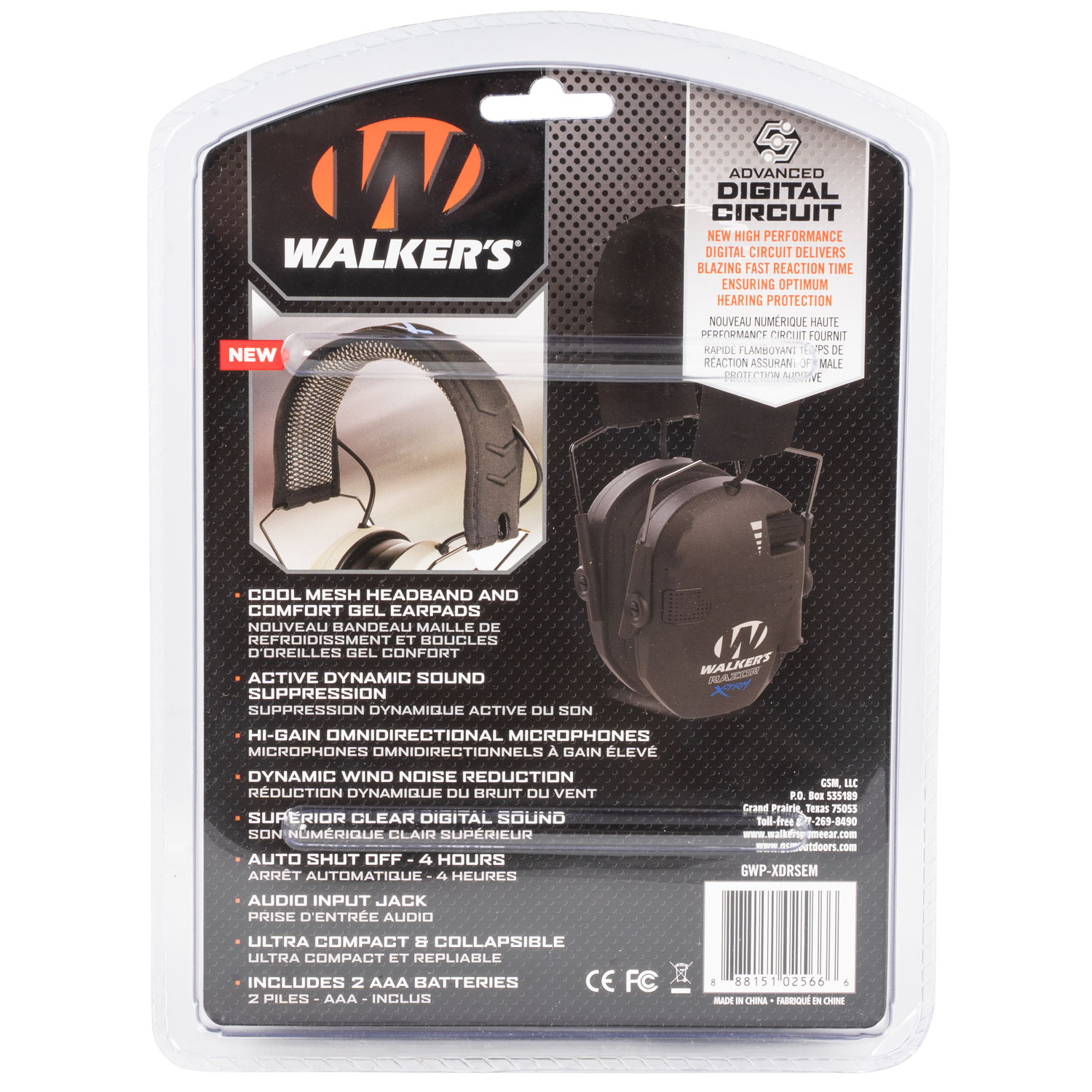 Walker’s GWPXDRSEM Razor X-TRM Digital Electronic Muff 21 dB Over the Head Black Polymer