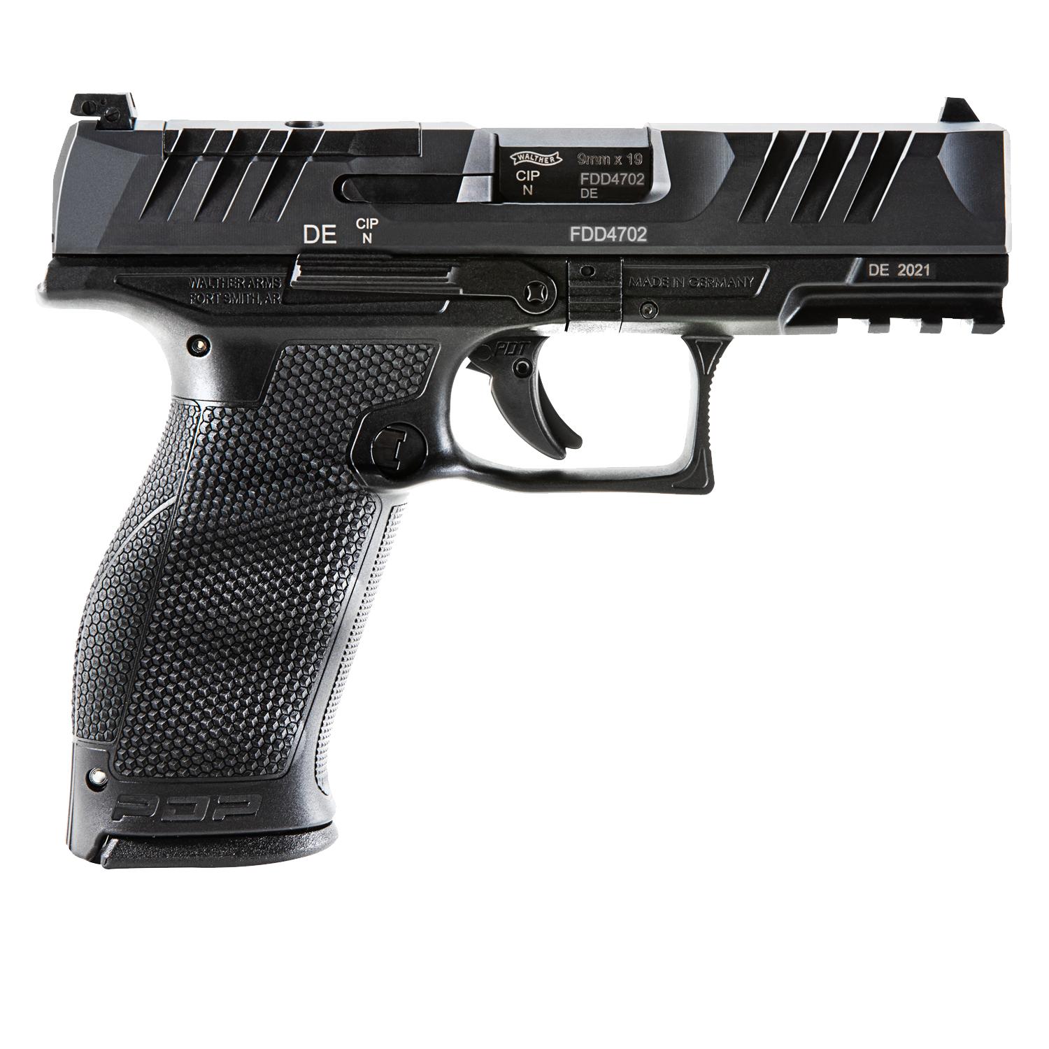 Walther PDP, Striker Fired, Semi-automatic, Polymer Frame Pistol, Full Size, 9MM, 4″ Barrel, Black, Adjustable Rear Sight, 18 Rounds, Optics Ready 2851237